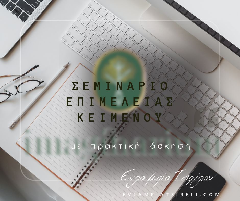 Τι είναι η επιμέλεια κειμένου και ποιες είναι οι ευθύνες του συγγραφέα; Ποια είναι τα είδη της επιμέλειας; Κανόνες γραμματικής και στίξης. Συνήθη γραμματικά λάθη. Χρήση εργαλείων (π.χ. Microsoft Word track changes, σχόλια, μορφοποίηση κειμένου, περιθώρια). ΑΣΚΗΣΗ