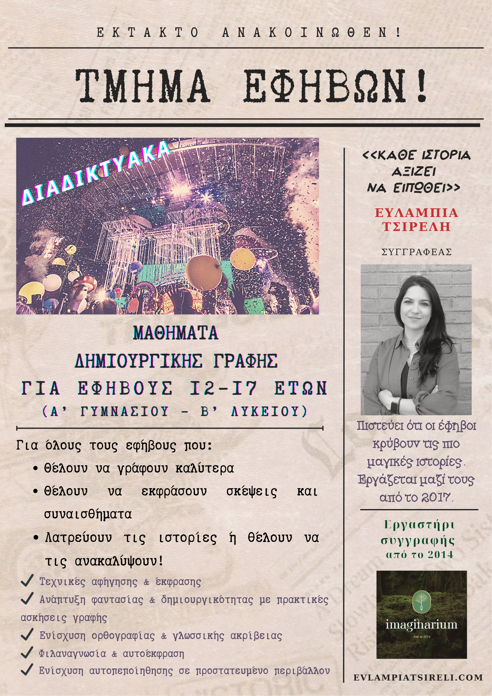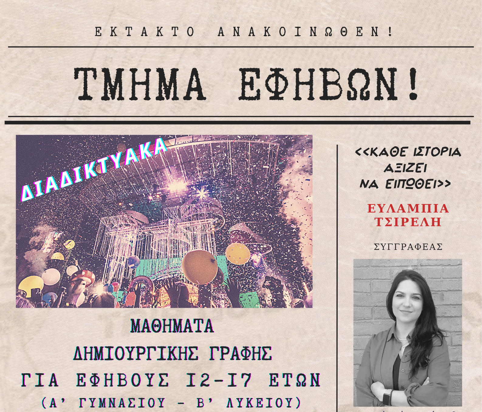 ΕΓΓΡΑΦΕΣ ΣΤΟ ΝΕΟ ΤΜΗΜΑ ΑΡΧΑΡΙΩΝ 18+ στο 6μηνο πρόγραμμα λογοτεχνικής γραφής και επιμέλειας κειμένου (διαδικτυακά).