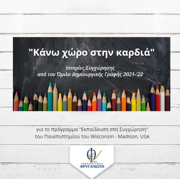 Στο πλαίσιο λοιπόν του Ομίλου Δημιουργικής Γραφής μαθητές και μαθήτριες από την α’ και β’ γυμνασίου που συμμετείχαν στο πρόγραμμα, έγραψαν ιστορίες που προσεγγίζουν τη δύσκολη έννοια της συγχώρησης πολύπλευρα. Μπορείτε να το διαβάσετε εδώ: https://read.bookcreator.com/CeT17iFYf0TAZV7MmCKfa5TS7pd2/myOUtHdiRC-2df69se1V-g