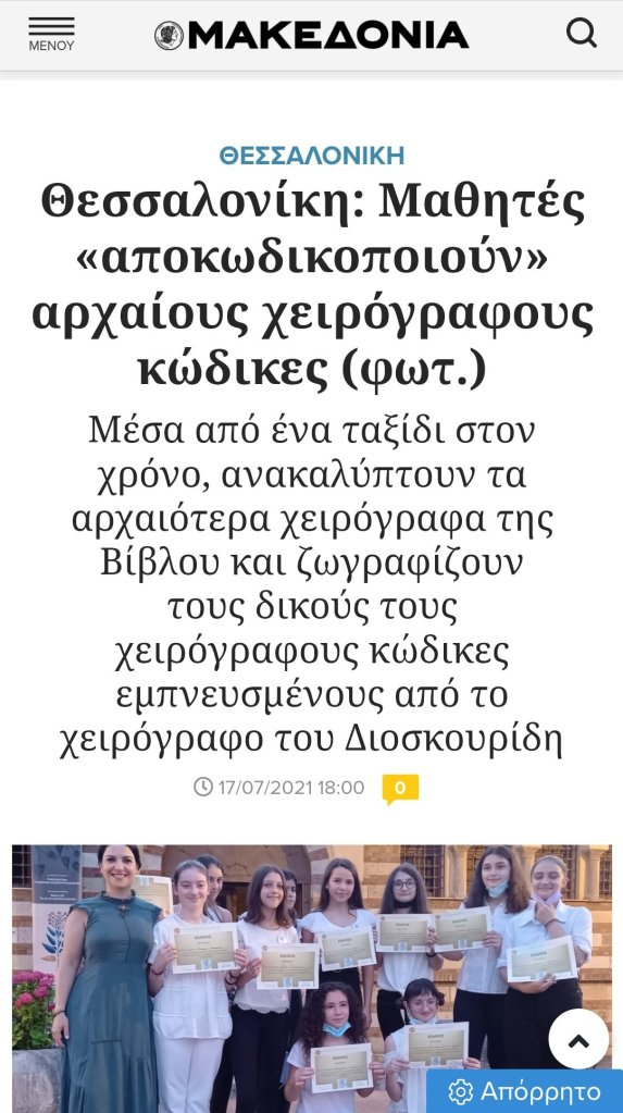 Αφιέρωμα στην Εφημερίδα Μακεδονία – Μαθητές «αποκωδικοποιούν» αρχαίους χειρόγραφους κώδικες (φωτ.)