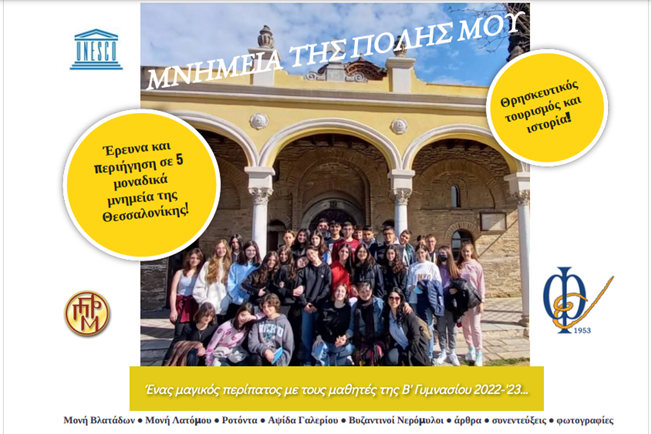 Ένας πρωτότυπος Οδηγός Θρησκευτικού Τουρισμού διαμορφώθηκε από την εκπαιδευτική δράση «Βυζαντινά Μνημεία της πόλης μου», στο πλαίσιο ενός ακόμα Συμφώνου Συνεργασίας του Σχολείου μας με το Πατριαρχικό Ίδρυμα Πατερικών Μελετών. Διακρίθηκε δε μεταξύ 19 κορυφαίων εκπαιδευτικών δράσεων από σχολεία της Ελλάδας και του εξωτερικού.