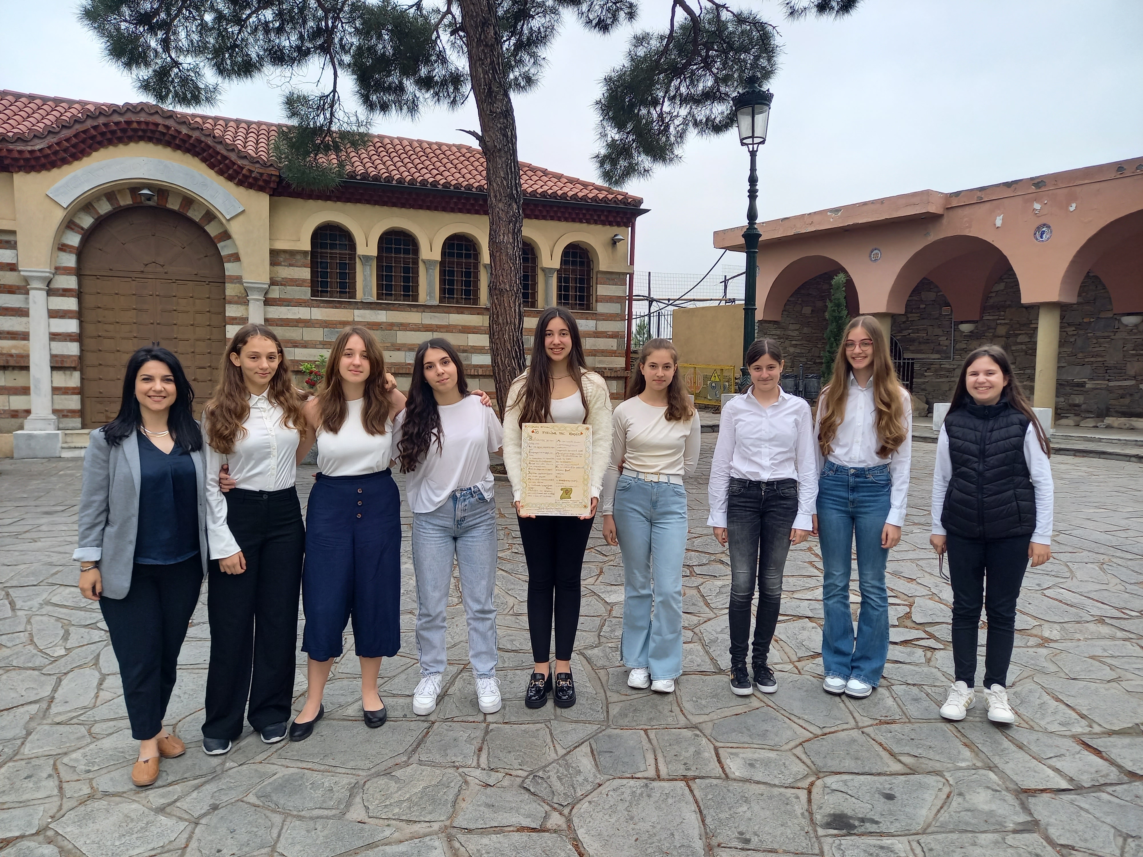 Η εκπαιδευτική-βιωματική δράση «ΜΙΑ ΜΕΡΑ ΣΤΟ ΒΥΖΑΝΤΙΟ» συμπεριλήφθηκε από το Πατριαρχικό ίδρυμα Πατερικών Μελετών στις 15 καλύτερες εκπαιδευτικές δράσεις, ανάμεσα σε 120. 9 ομάδες μαθητών και μαθητριών της Β’ Γυμνασίου (45 στο σύνολο) διεξήγαγαν έρευνα για την καθημερινή ζωή στο Βυζάντιο. Οι εργασίες που παρέδωσαν καλύπτουν όλους τους τομείς της ζωής στο Βυζάντιο και χρησιμοποιούν μια πλούσια δικτυογραφία και βιβλιογραφία. Περιλαμβάνουν δε σπάνιες εικόνες και έργων τέχνης, ακόμα και ζωγραφική των ίδιων των μαθητών. Στο ίδιο πλαίσιο πραγματοποιήθηκε «βυζαντινός περίπατος» με τα τμήματα της Β’ Γυμνασίου, σε Μνημεία Παγκόσμιας Πολιτιστικής Κληρονομιάς της UNESCO της πόλης μας, όπου μαθητές της δράσης ξενάγησαν τους υπόλοιπους συμμαθητές τους στα βυζαντινά μνημεία και τις εκκλησίες.